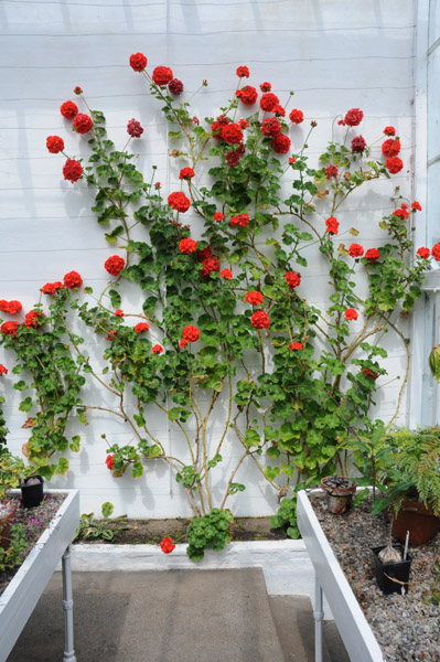 Géranimums grimpants dans les serres du jardin de Falkland