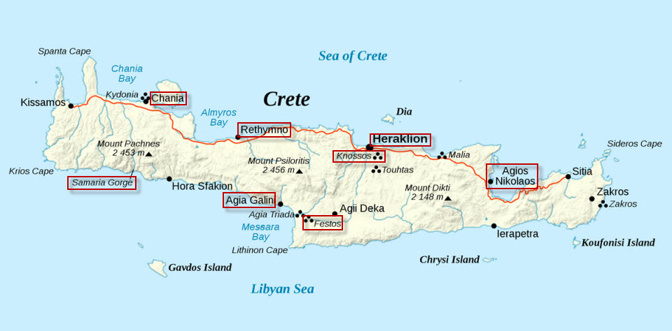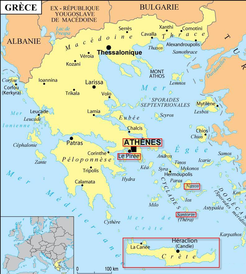 Grèce (Crête, Santorin, Naxos, Athènes) – 01 au 15 mars 1997 – Carte