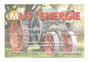 Visite du musée Mus’Energie (musée de la force motrice et de l’énergie au service de l’homme) avec une importante collection de machines à vapeur et de tracteurs agricoles (brochure).