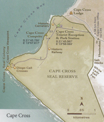 La réserve de Cape Cross a été créée en 1969 pour protéger la colonie d’otaries à fourrure du Cap. Pendant la période de reproduction, le nombre d’otaries à fourrure peut dépasser 200 000 individus. De telles colonies reproductrices continentales de grande taille étaient rares ou absentes lors des premières études européennes sur cette côte. Les colonies étaient limitées aux îles et on suppose que les chasseurs-cueilleurs vivant le long de la côte et les prédateurs tels que les lions ont pu inhiber les colonies sur le continent.